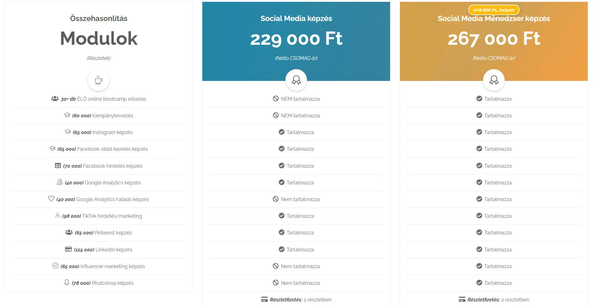 A képzés tematikájának változtatásának jogát fenntartjuk, melynek leggyakoribb okai, a Facebook, a Facebook Business, a Google Ads és a Google Analytics, és a Google Tagmanager rendszerének változásai, valamint az online marketing munkamódszerének fejlődése.