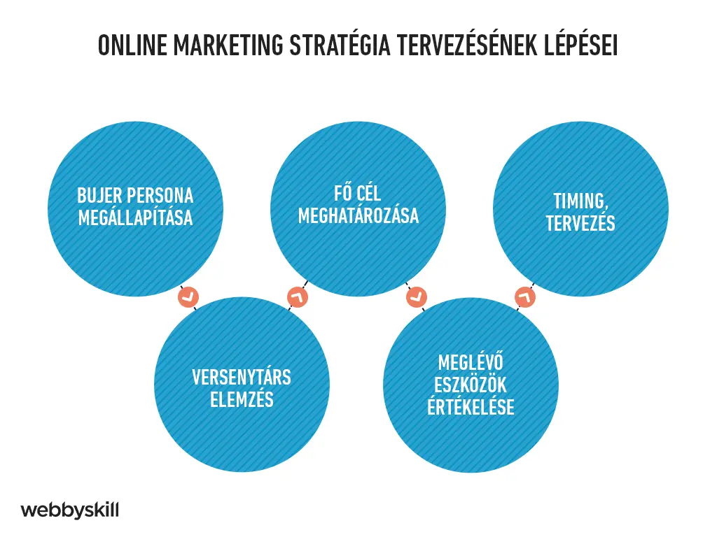 Az online marketing eszközök tudatos használatához természetesen online marketing stratégiára van szükség. Nagyon nagy vonalakban a stratégiád megtervezésének a következők a lépései: