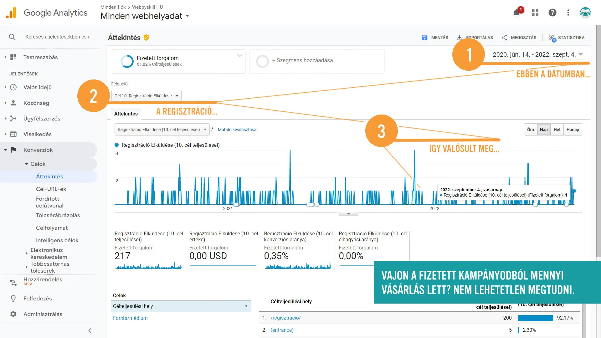 1. Az online marketing tudások közül a legfontosabb a Google Analytics. Ez az alap. Ez méri az oldaladon az emberek különböző tevékenységeit. Ha már láttál közelről websiteot, webshopot, akkor már van annyi tudásod, hogy megismerd, hogy hány valódi ember jár az oldaladon, abból mennyi a vásárló, ők merre mennek az oldaladon, hol veszíted el őket. Miért olyan nagyon fontos ez?